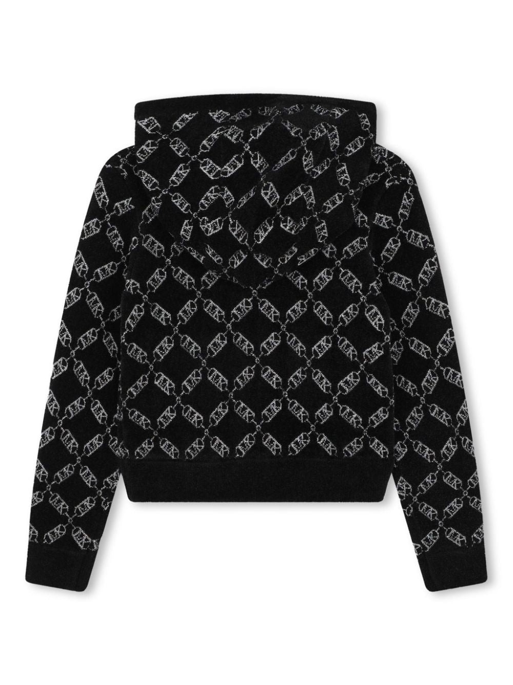 Design lavorato a magliaTrama metallizzataMotivo con logo jacquardCappuccio ampioManiche lungheDue tasche a filetto lateraliOrlo e polsini a costeMaglione con zipChiusura frontale con zip