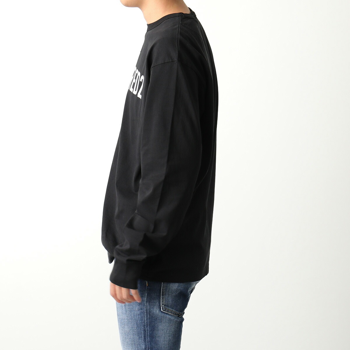 T-shirt a maniche lunghe da uomo con logo a contrasto colore e lettering sulla parte frontale, girocollo e orlo dritto