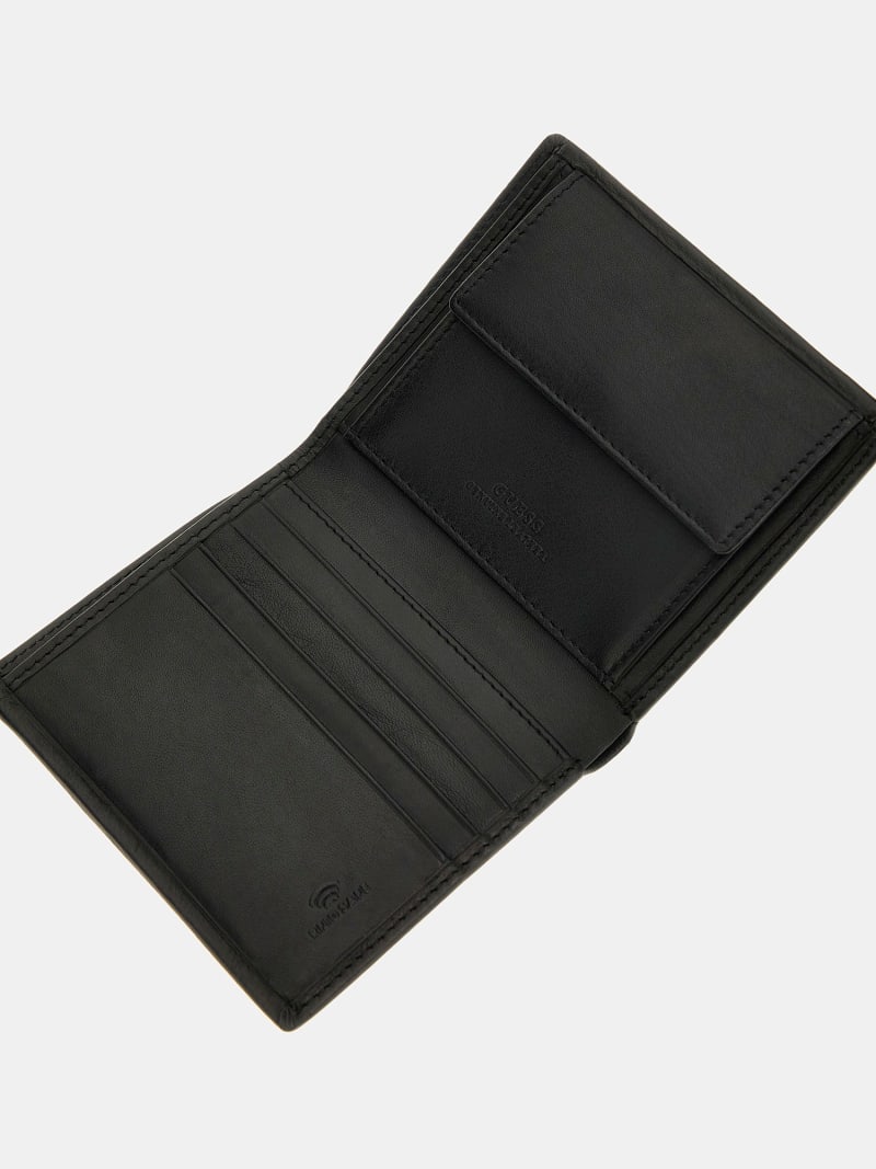 Rivestimento esterno in vera pelle.Portamonete integrato con bottone.Slot per carte di credito.Finiture in argento.