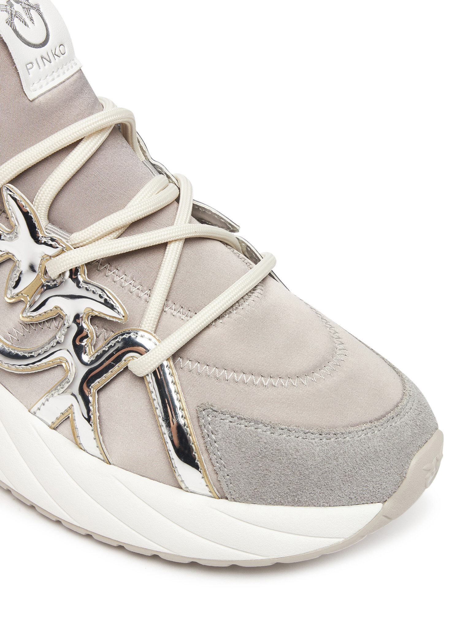 * Tomaia in mix di materiali con inserti metallizzati e suede