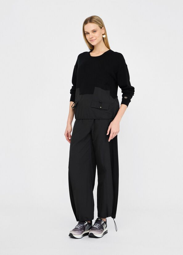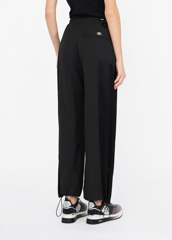 Pantaloni jogging neriRealizzati in nylon e rasoElastico con coulisse in vitaTasche sui fianchiTasca con patta e logo in metallo sul retroElastico con coulisse alle caviglieChiusura con bottone e zip coperta