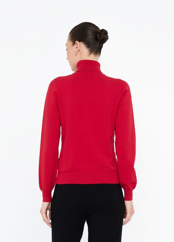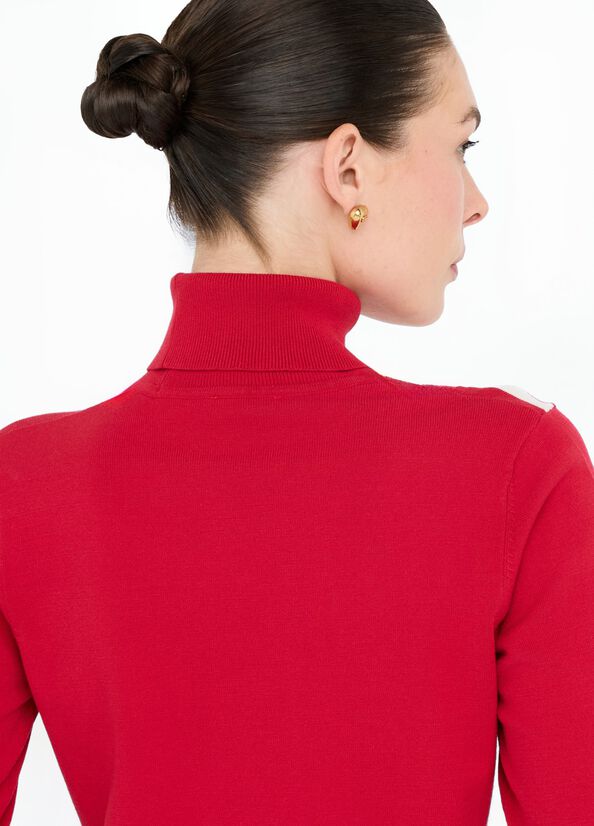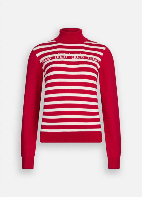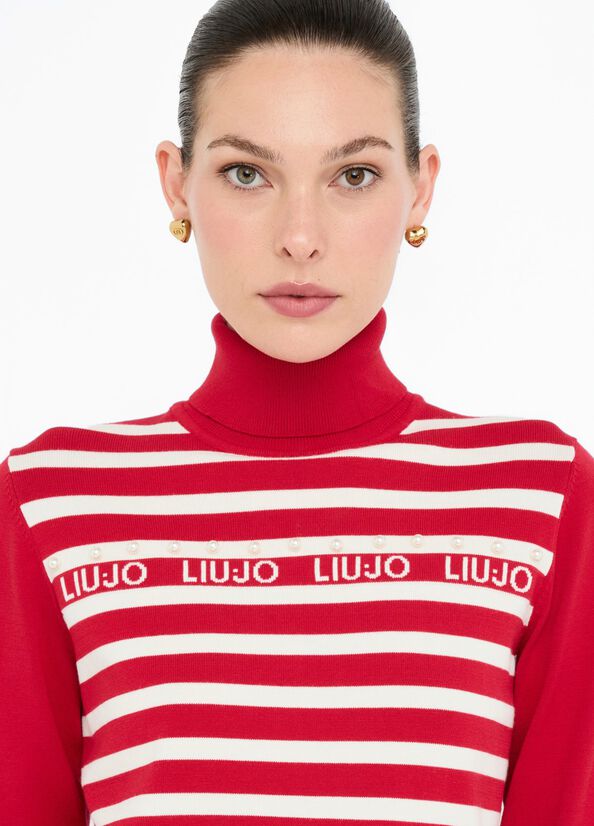 Dolcevita rossaRealizzata in maglia di misto viscosaMotivo a righeLogo jacquardPerle applicateManiche lungheBordi a costineProdotto "Liu Jo Better"