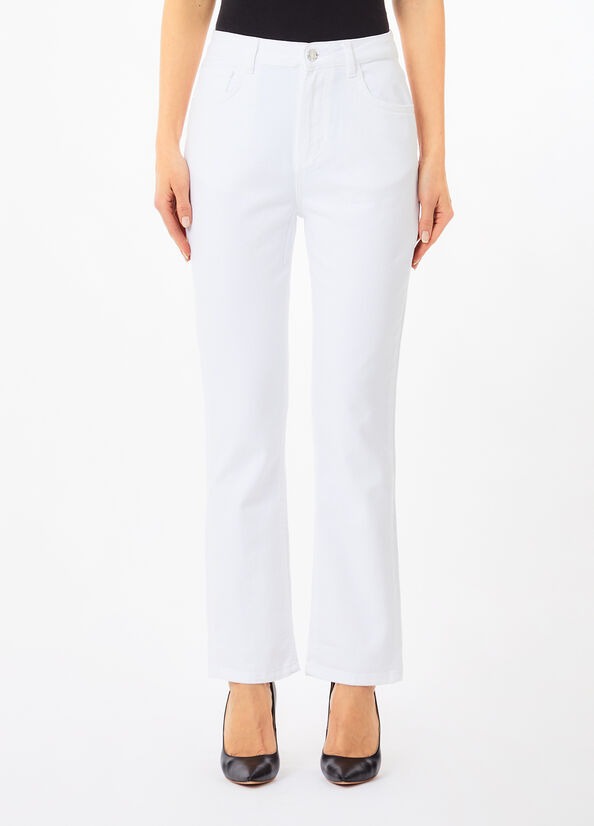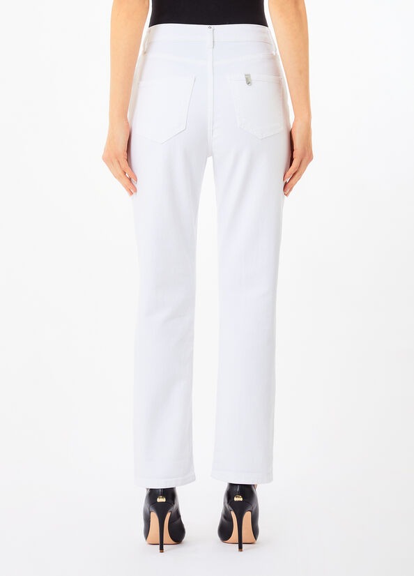 Jeans Bottom Up in denim di cotoneVita altaPiega stirataModello cinque tascheGamba drittaChiusura con bottone e zip nascostaLogo sul retroRisvolto al fondo