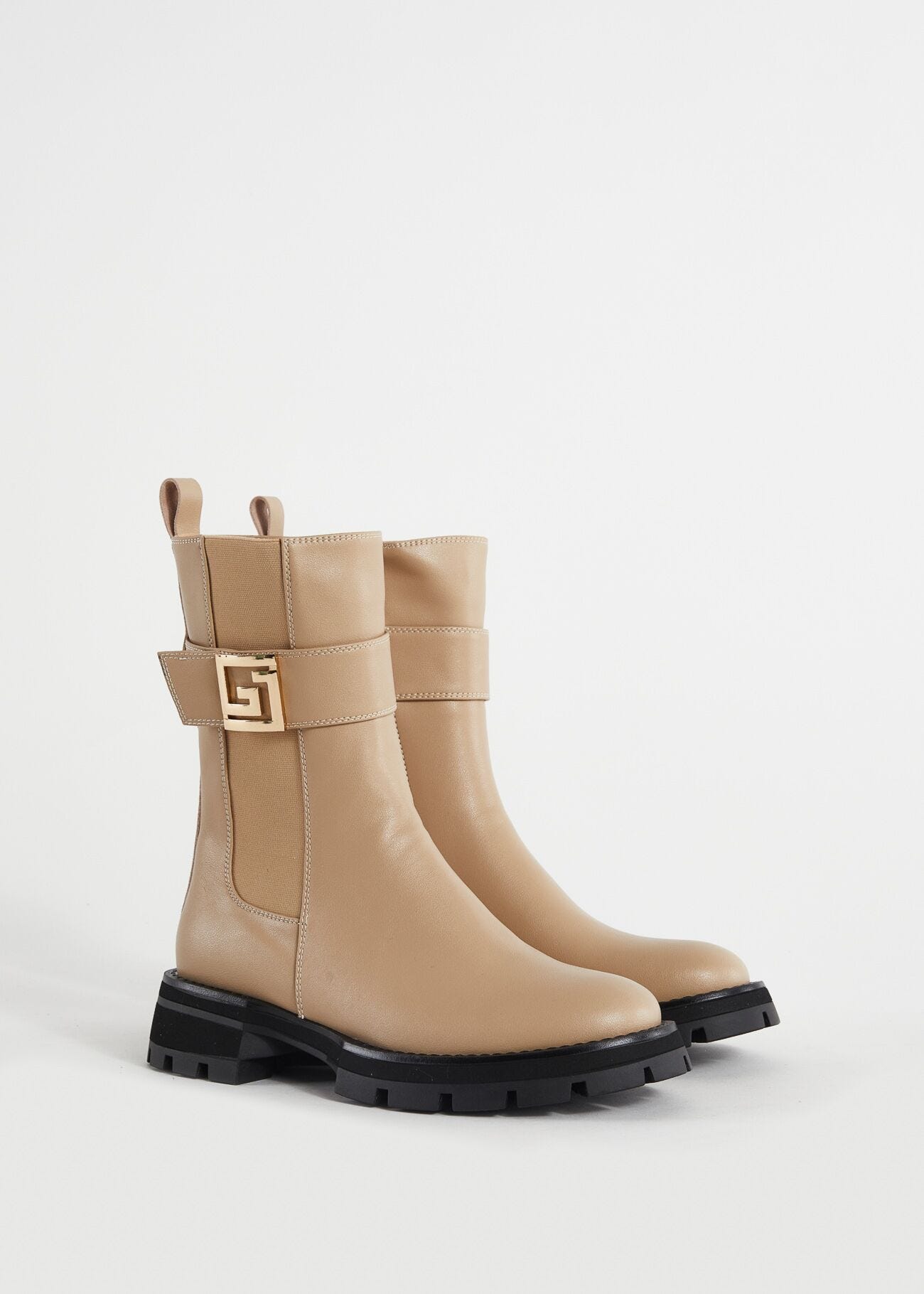 Stivaletti in pelleInserto elasticoCinturino con lettering GJ in metallo doratoLoop sul retroPunta tondaSuola carrarmatoChiusura con zip interna