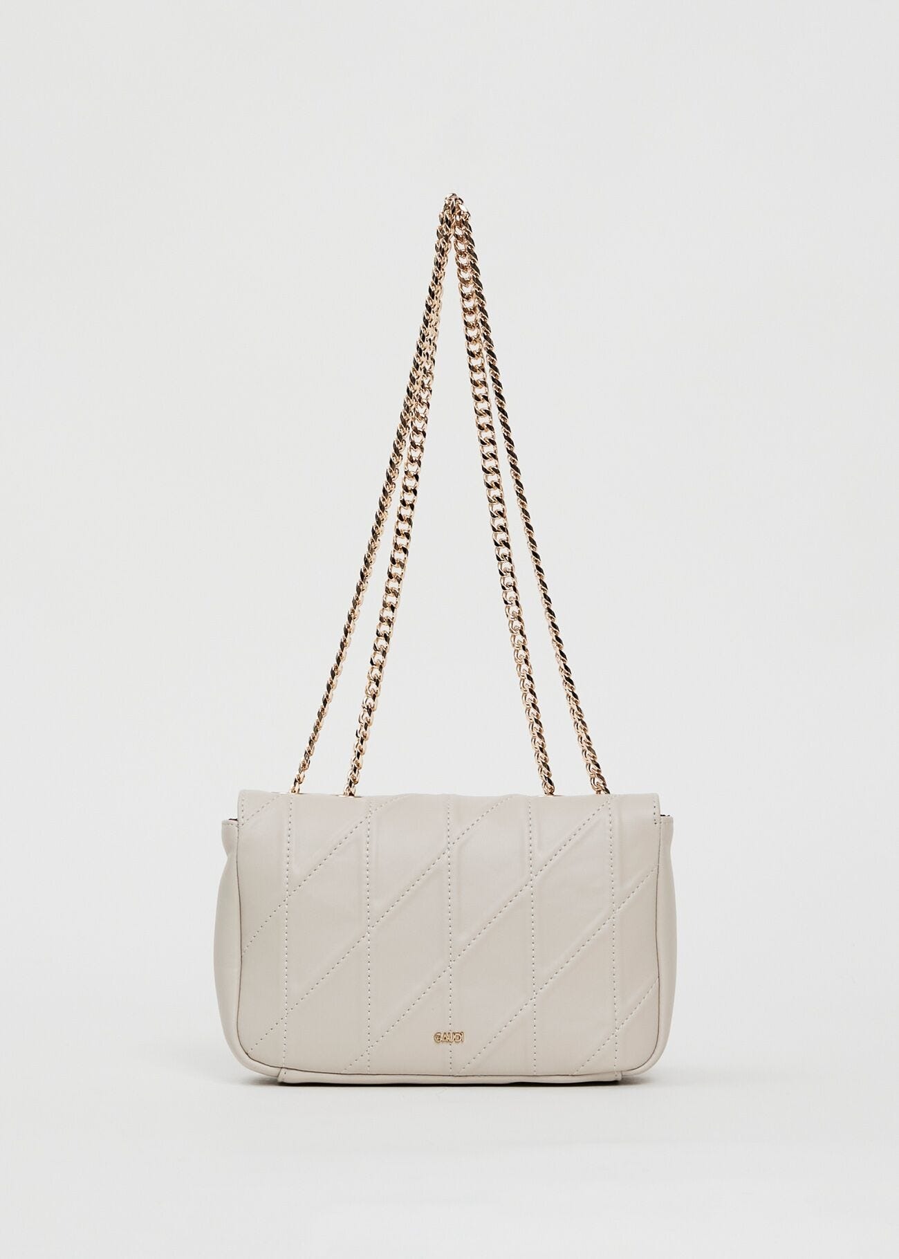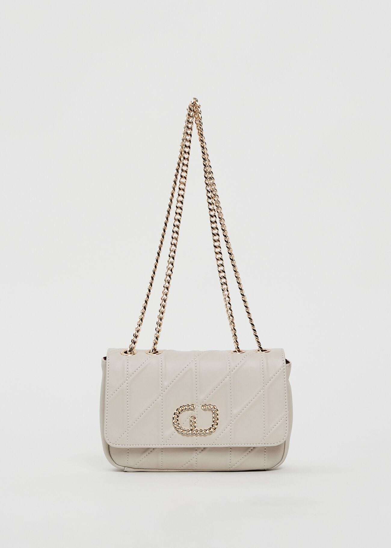 Scegli la borsa a spalla in morbida similpelle trapuntata con logo e tracolla a catena in metallo dorato. Per un look sofisticato e glamour.