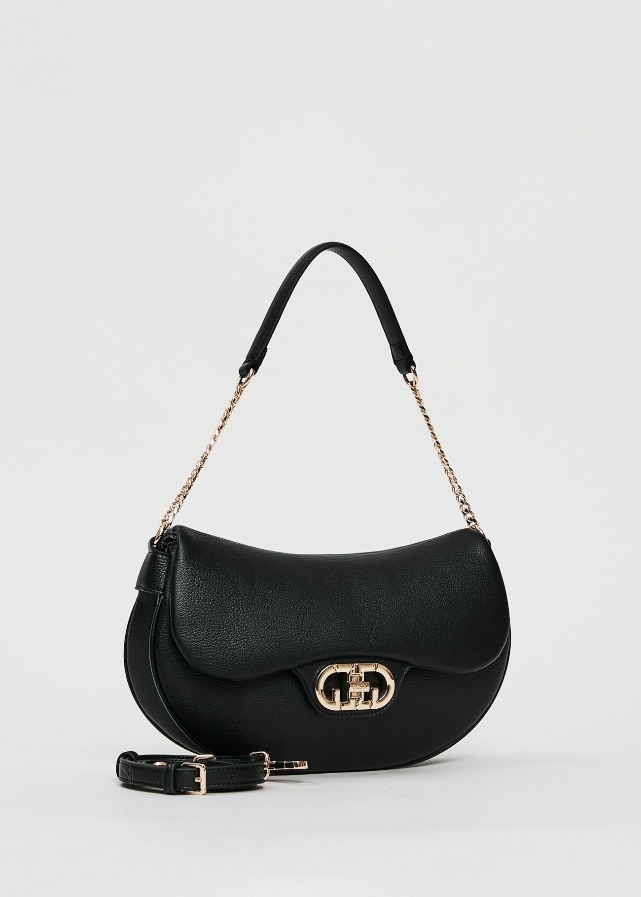 Scegli la borsa hobo in morbida similpelle bottalata con logo GJ, manico con catena e tracolla rimovibile. Per un look sofisticato e contemporaneo.