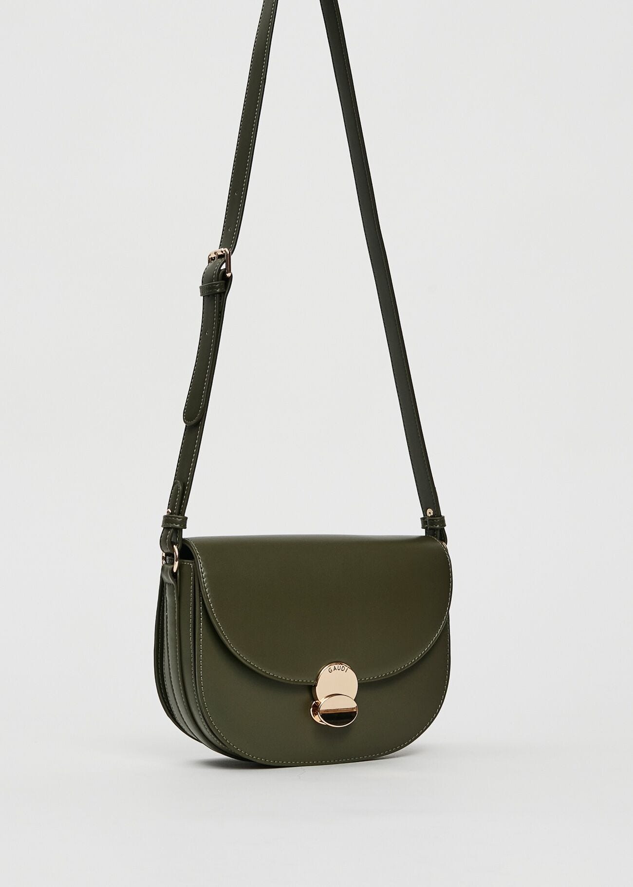 Scegli la borsa crossbody in similpelle con tracolla regolabile e logo in metallo. Linee pulite e raffinate per un'eleganza intramontabile.