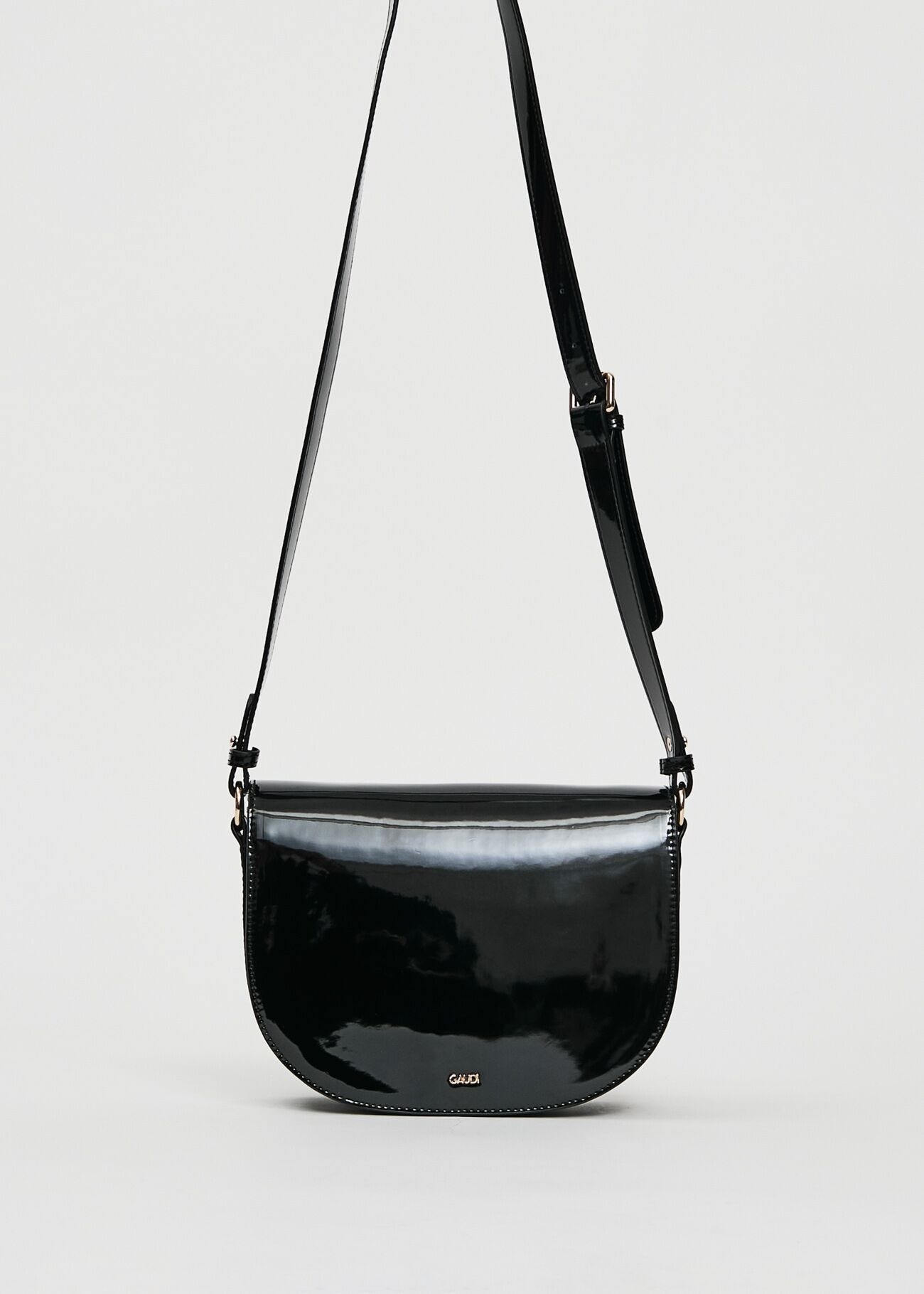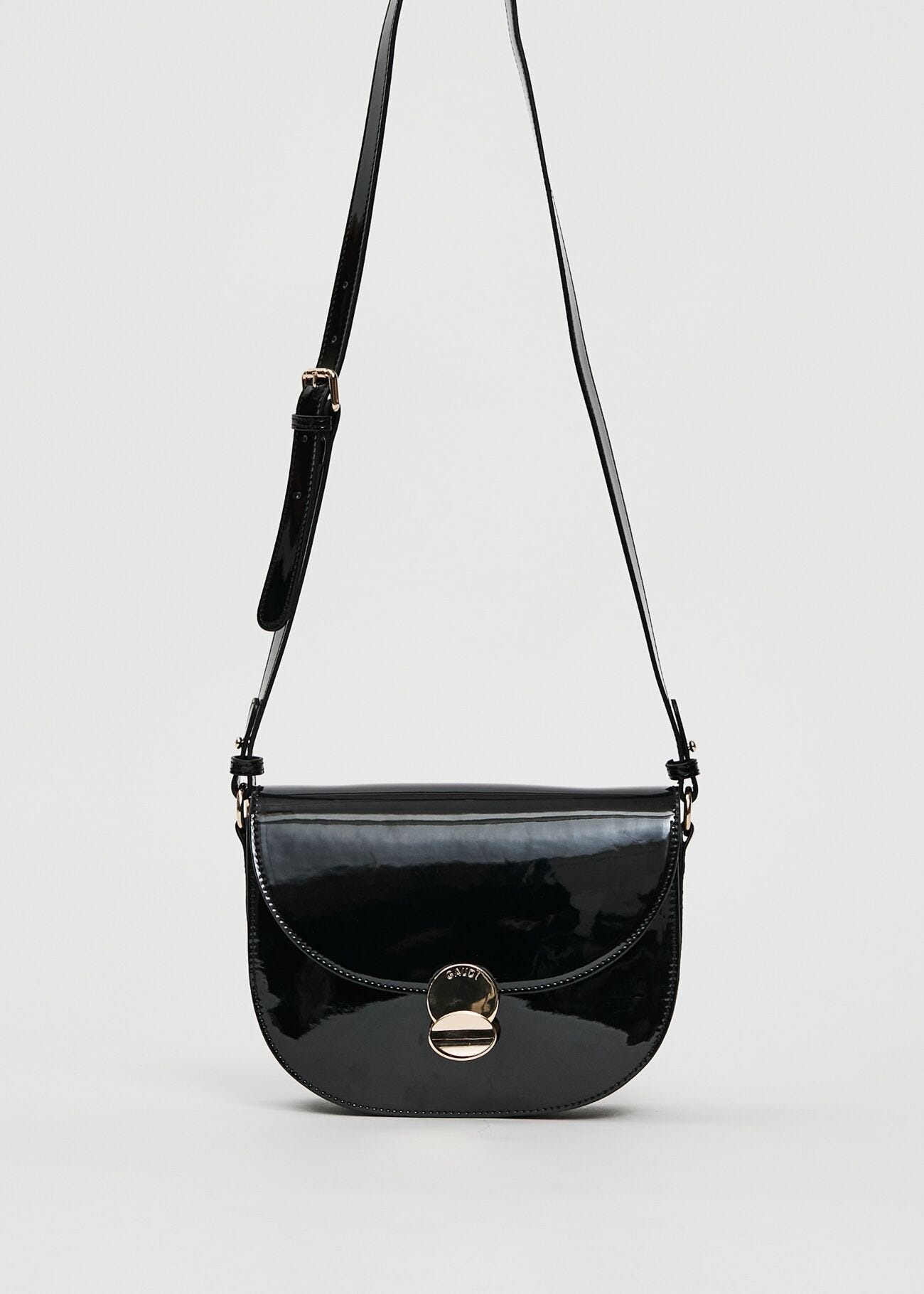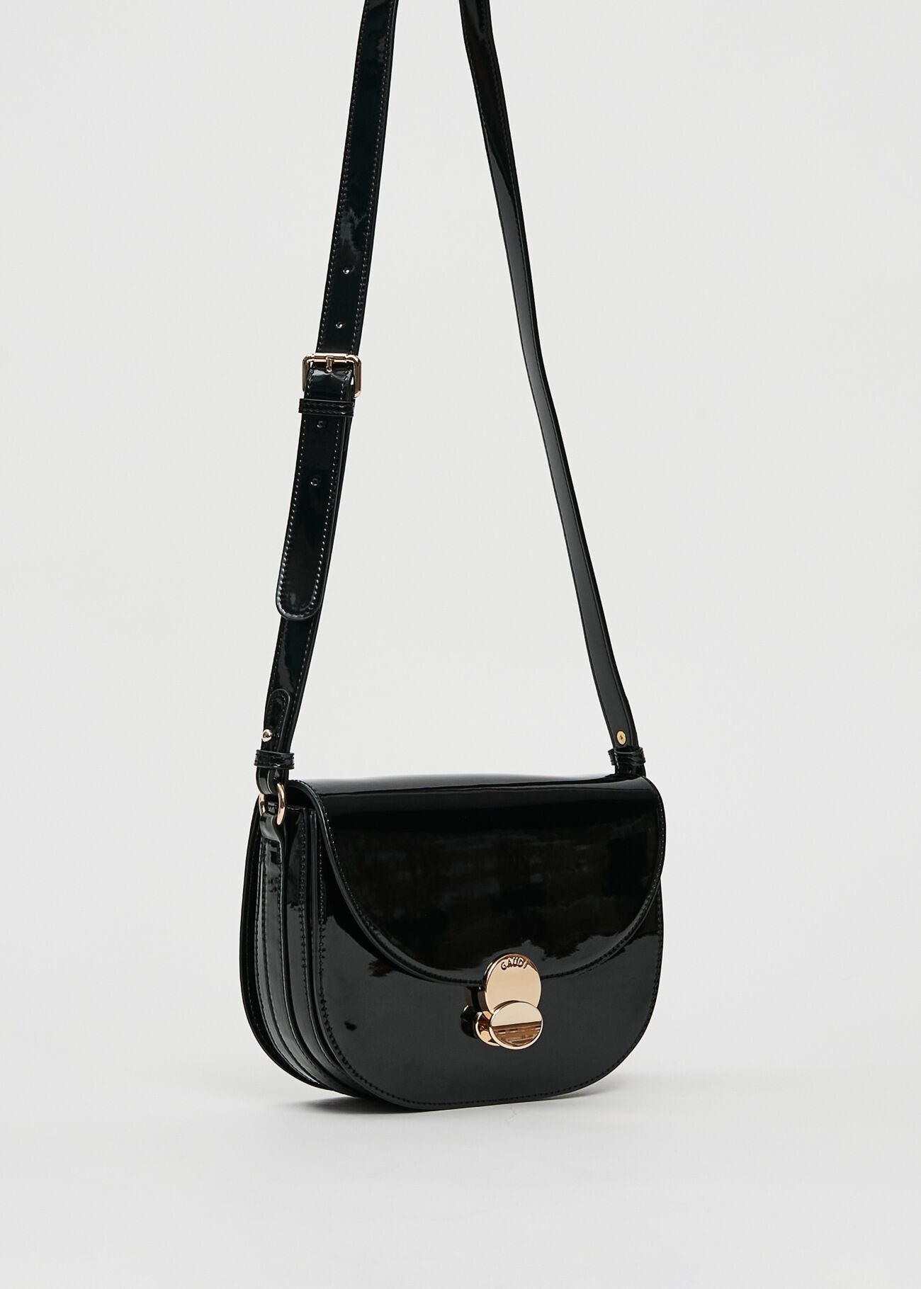 Scegli la borsa crossbody effetto vernice lucida con tracolla regolabile e logo in metallo. Per un tocco glam al tuo outfit da sera.
