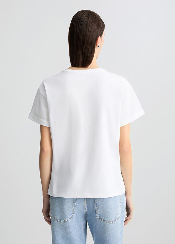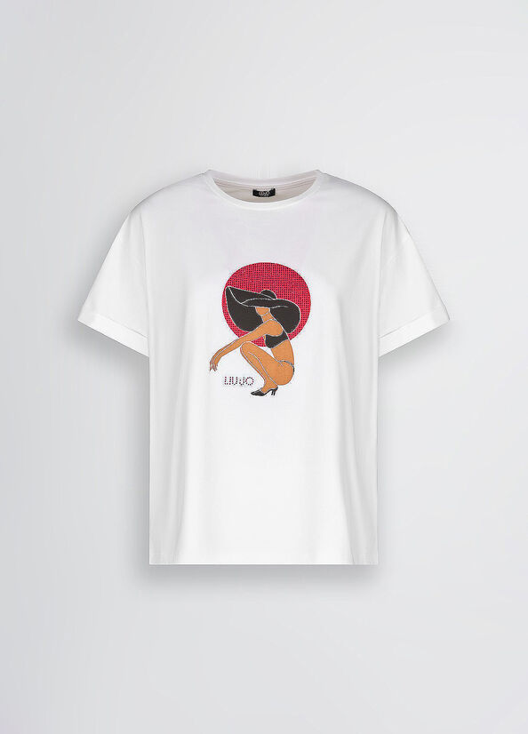 T-shirt in jersey di cotone stretchStampa grafica con strass sul davantiScollo rotondoManiche corte con risvoltoProdotto "Liu Jo Better"