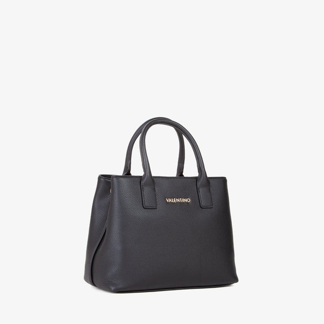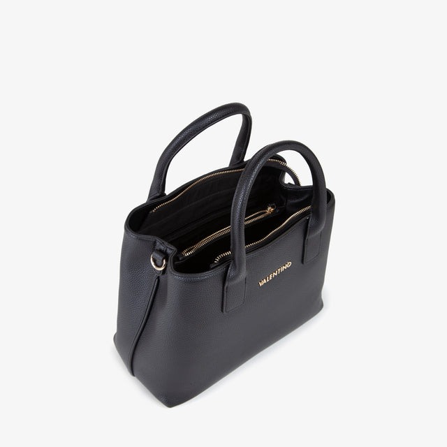 Shopping a mano, in grana, di medie dimensioni, con logo in metallo e tracolla in nastro staccabile e regolabile.