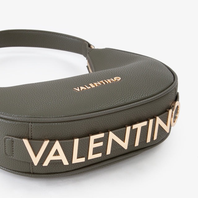 sacca iconica del brand con maxi lettering in metallo lungo il fondo della borsa