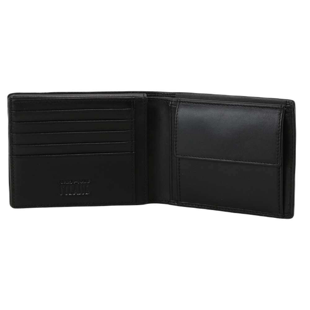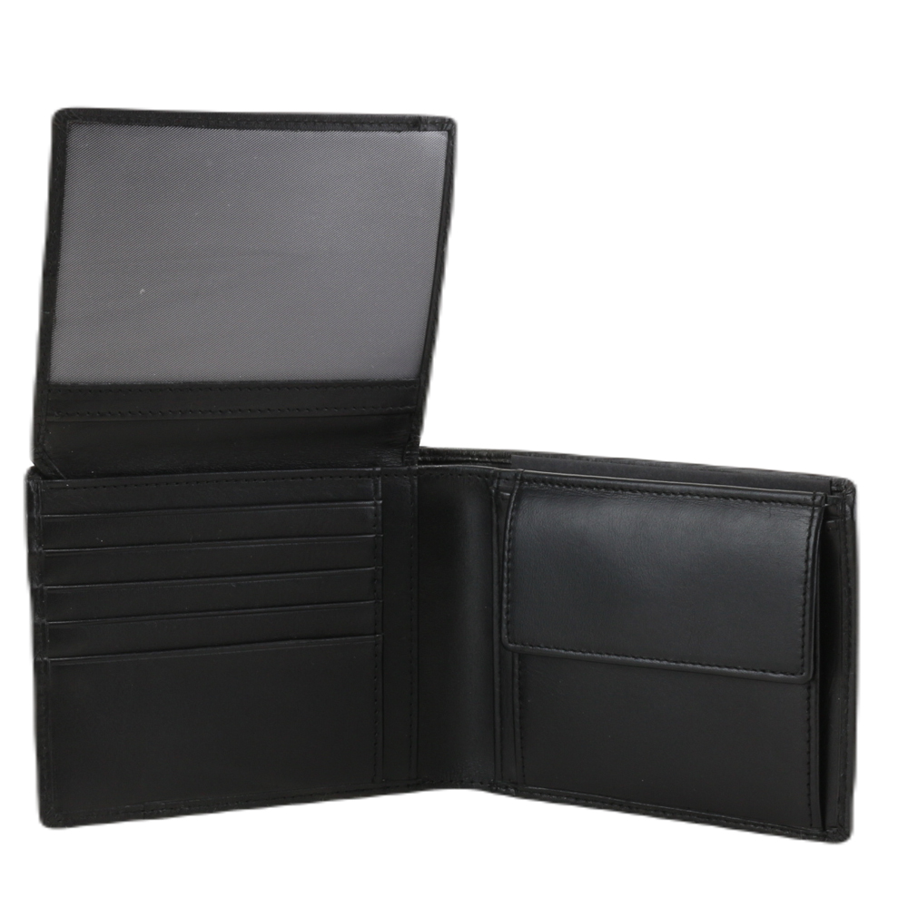 Portafogli uomo realizzato in vera pelle. Scomparto porta banconote, scomparti porta carte di credito, scomparti porta documenti a tasca e scomparti porta documenti con rete trasparente, tasca porta monete.