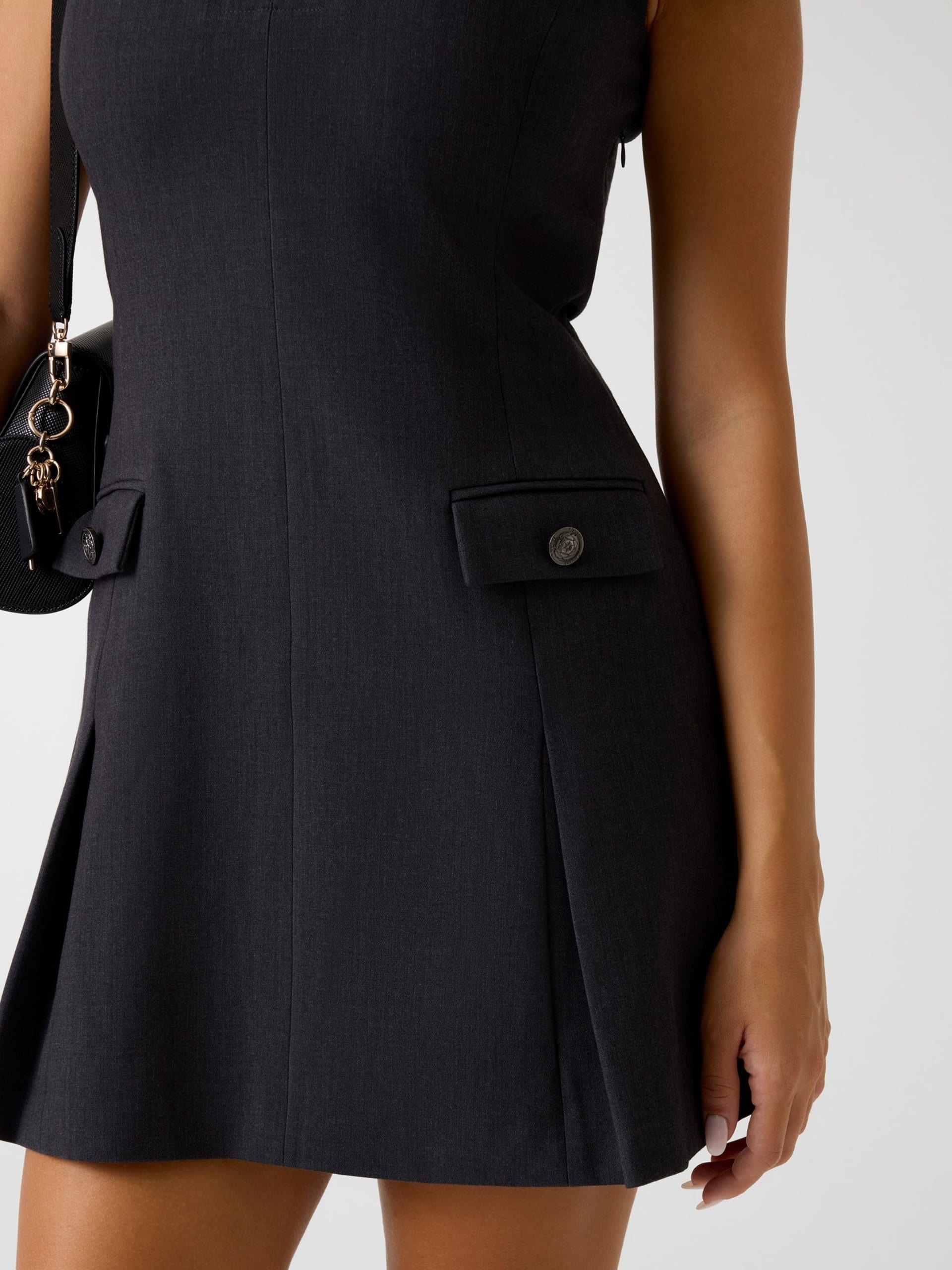 Vestito mini in flanella misto viscosa stretch.Scollo a V senza colletto.Silhouette fit and flare e maniche ad aletta.Tasche finte con patta e bottone decorativo sul davanti.Chiusura laterale con zip.
