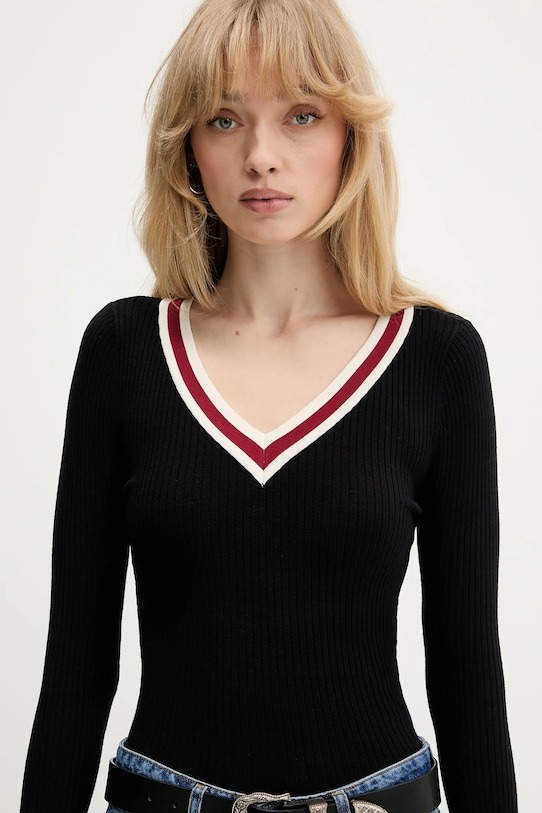 Guess Jeans maglione realizzato in maglia fine elasticizzata. Il modello realizzato in un tessuto estremamente confortevole con un alto contenuto di viscosa.