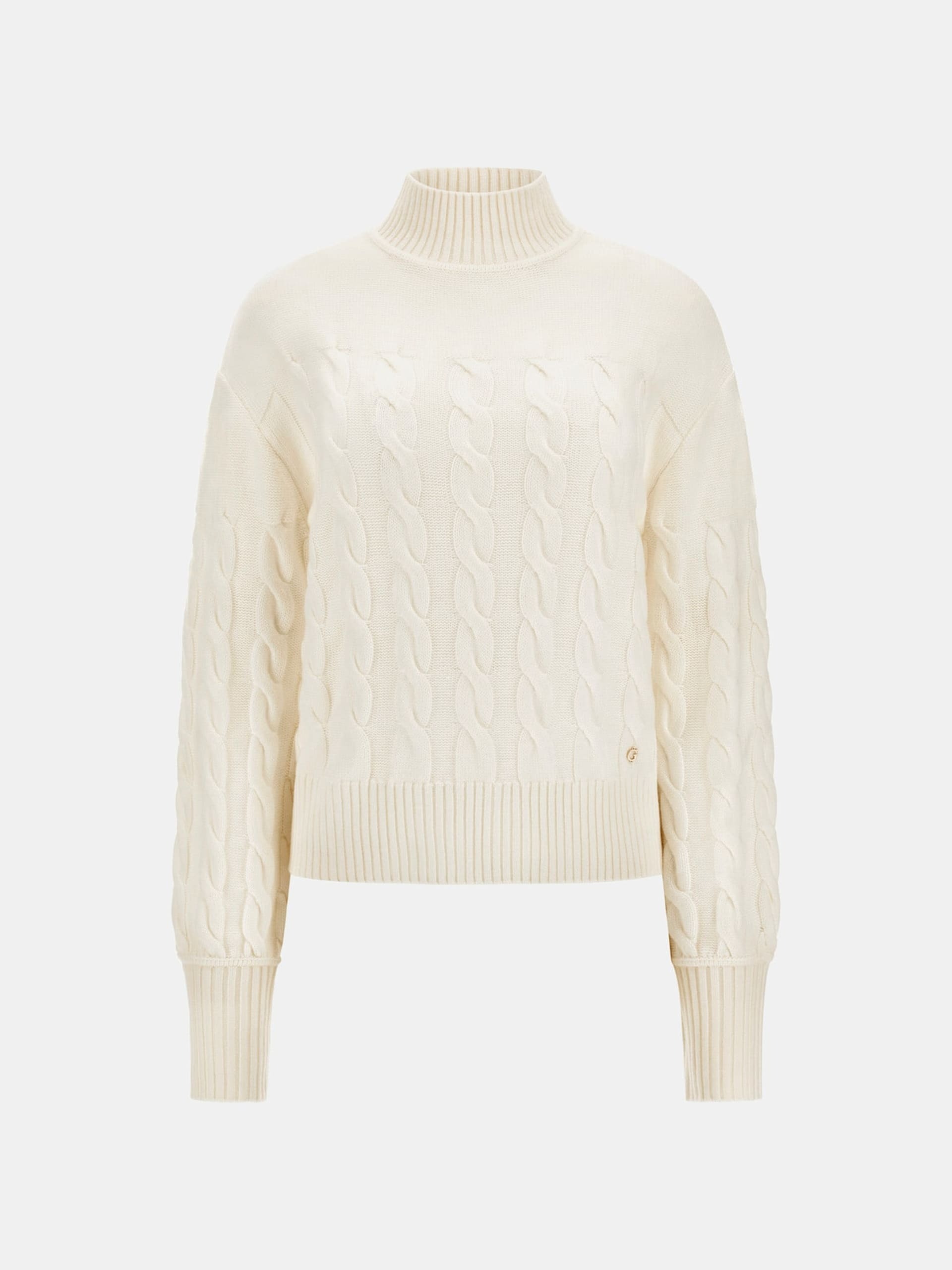 Maglione in misto lana.Manica lunga a palloncino e spalle scese.Comoda vestibilità regular.Maniche e busto a trecce.Collo a lupetto, polsini e orlo in maglia a costine.