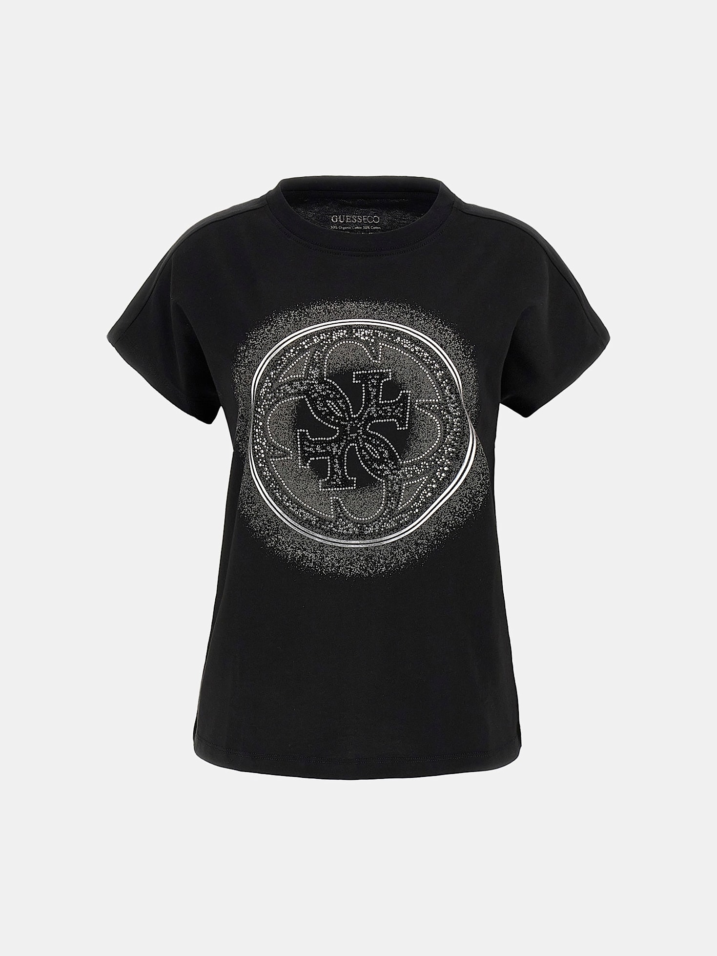 T-shirt in jersey di puro cotone.Classico girocollo e manica corta.Vestibilità slim che valorizza la figura.Logo 4G frontale decorato con strass.