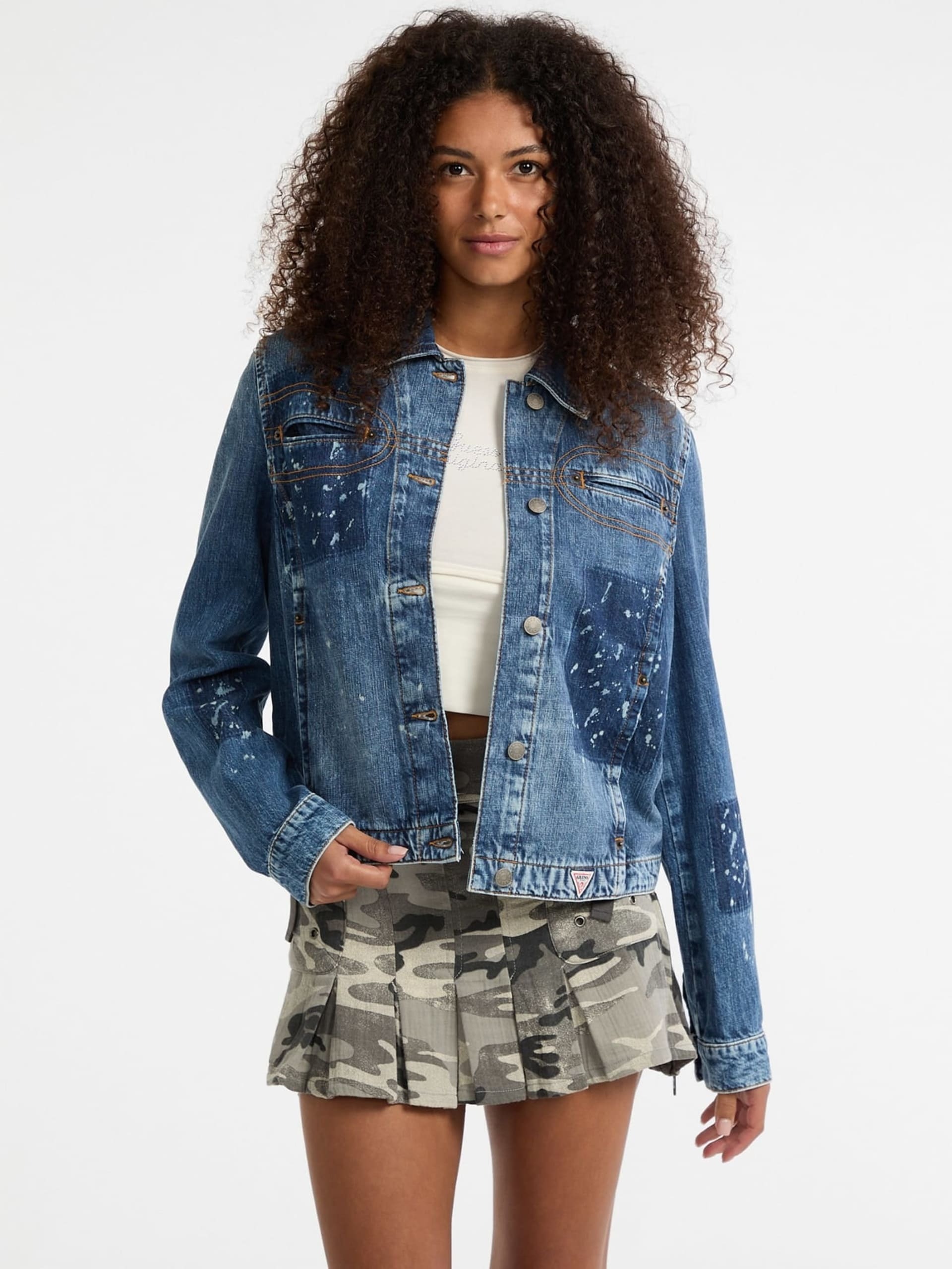 Giacca jeans con vestibilità regular.Colletto ripiegato.Maniche lunghe.Chiusura frontale con bottoni.