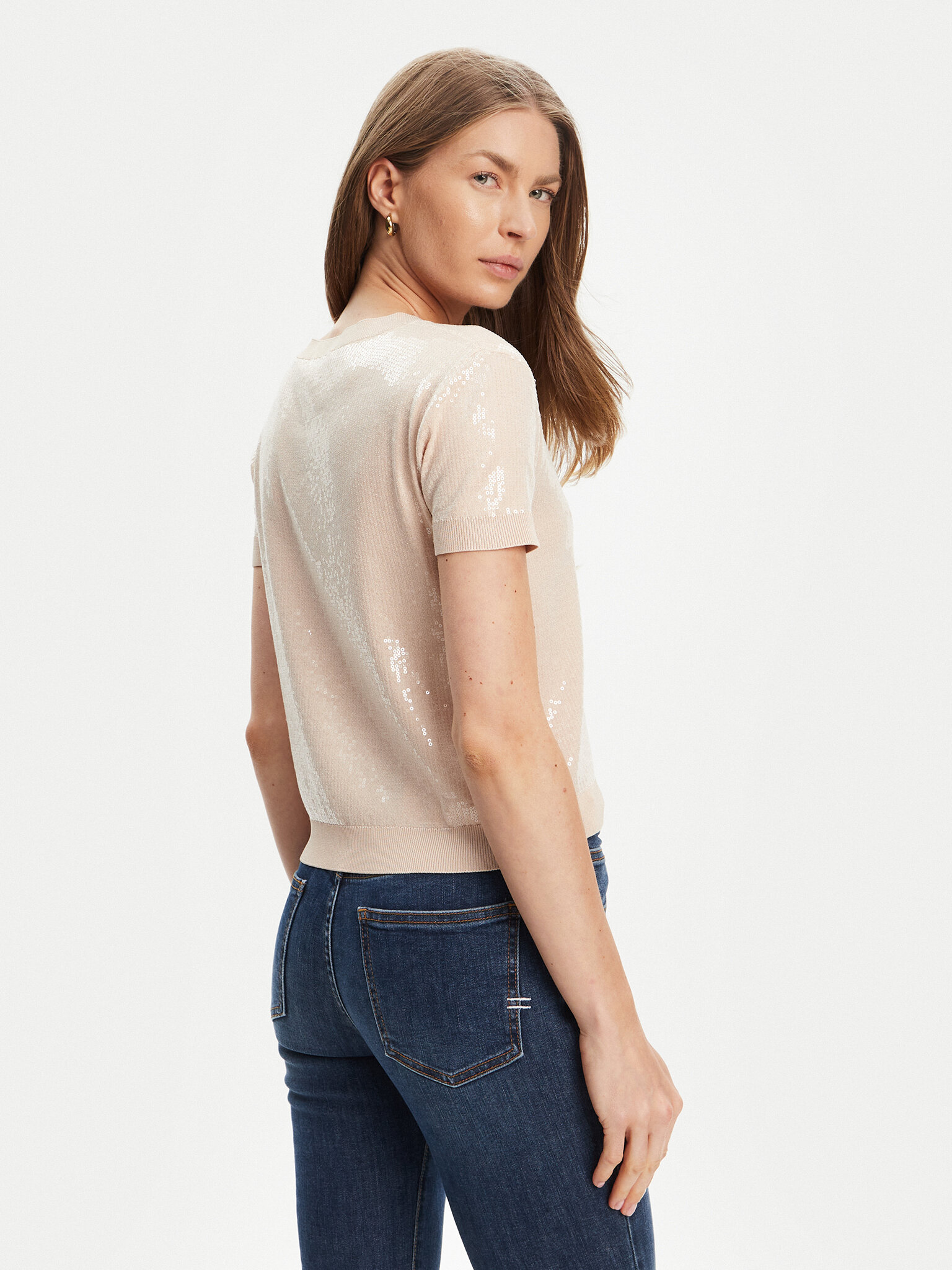Maglione cropped dalla vestibilità regular.Paillettes all-over, per un tocco scintillante.Girocollo e manica corta.Polsini e fondo a costine.