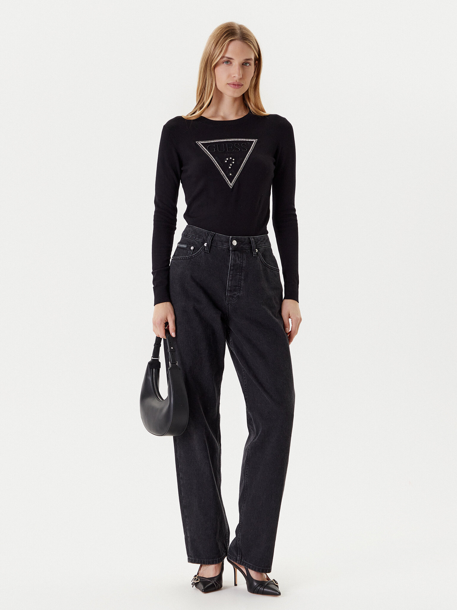 Maglia a maniche lungheScollo rotondoLogo frontale decorato con applicazioniPolsini e orlo inferiore a costineVestibilità slim