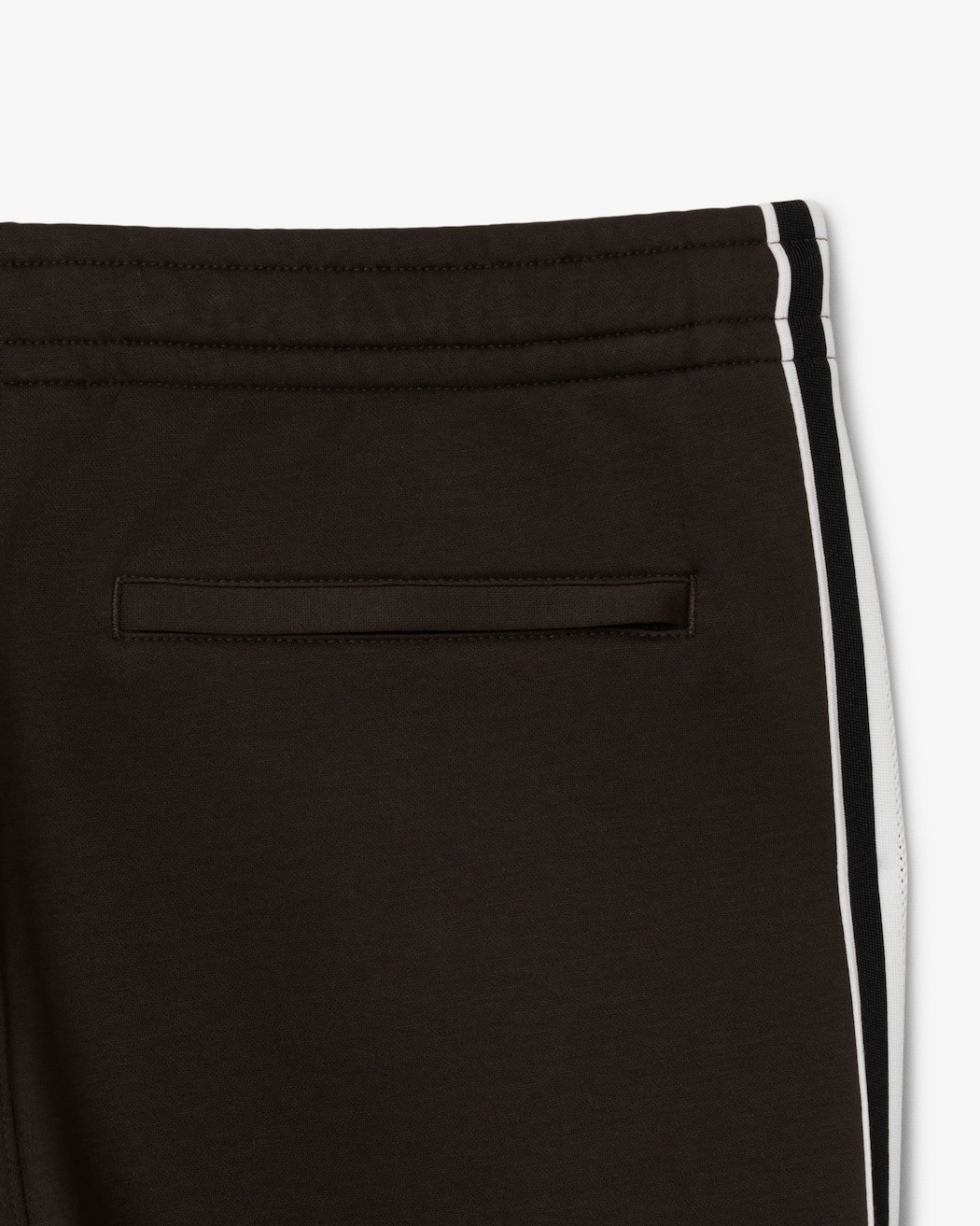 La moda incontra lo sportswear in questi pantaloni felpati, frutto di 90 anni di esperienza nella moda Lacoste e nello sportswear. Made in France in confortevole jersey double face, con sofisticati dettagli di finitura come le pieghe cucite e i pannelli testurizzatati a righe a contrasto. Uno stile sofisticato, rifinito con il tradizionale coccodrillo ricamato.