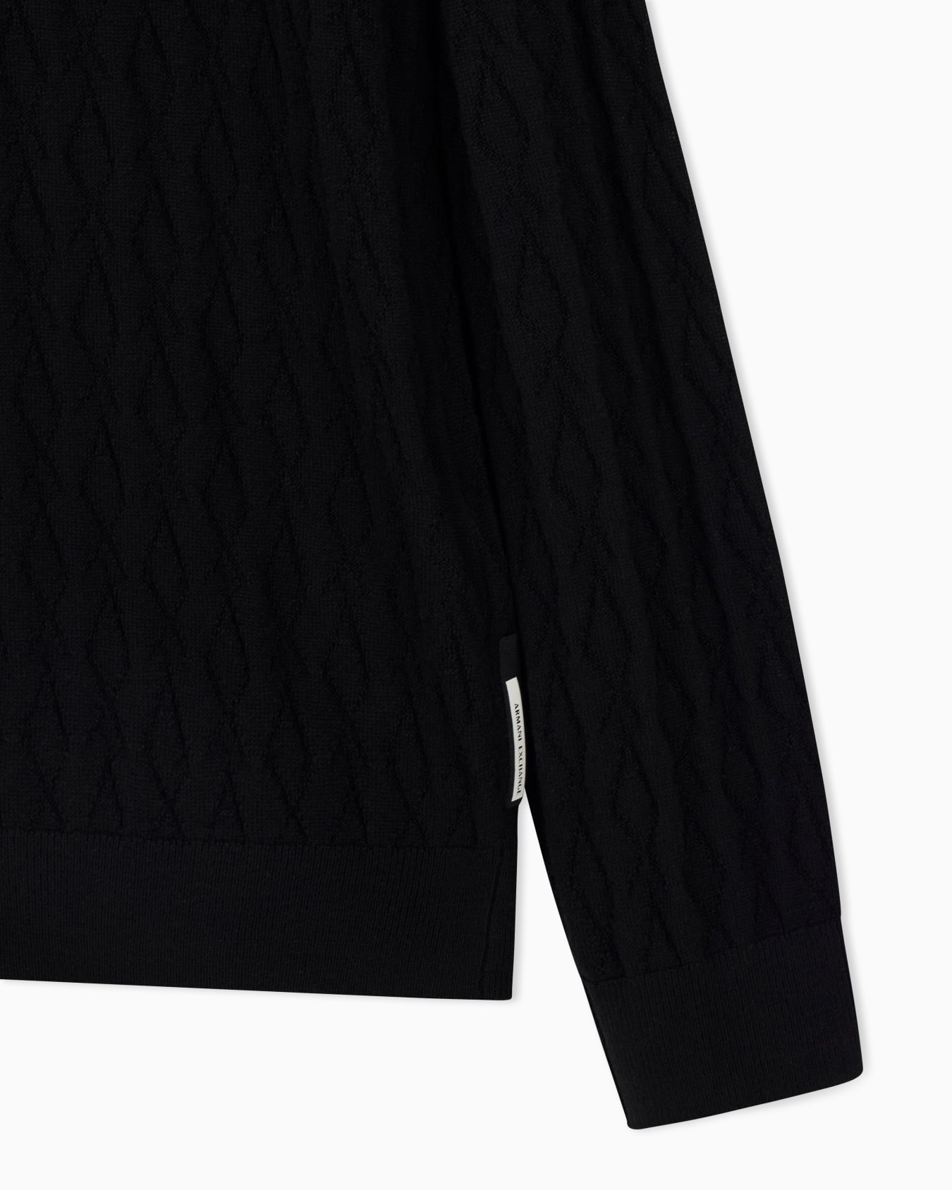 Maglione girocollo in misto lana, caldo e confortevole. Caratterizzato da una lavorazione a onde effetto vedo non vedo e profili a costine per un tocco di stile. Completato da un’etichetta con logo, è perfetto per un look casual ma curato.