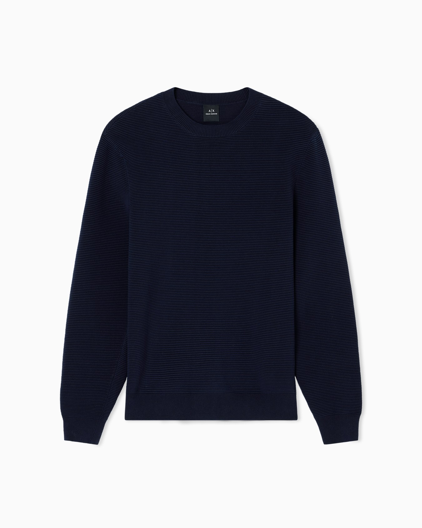 Maglione girocollo realizzata in morbido cotone, caratterizzata da una distintiva lavorazione a micro costine orizzontali che crea un effetto texturizzato super cool. Questo pullover è il capo perfetto per aggiungere un tocco di stile rilassato ma curato ai tuoi outfit di tutti i giorni. Con il suo design essenziale, scollo rotondo e maniche lunghe, offre comfort e una vestibilità contemporanea.
