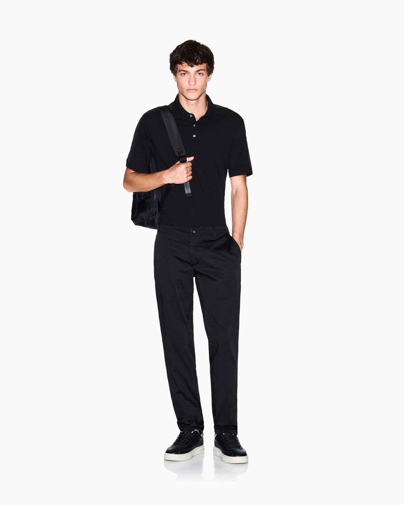 Polo regular fit realizzata in classico cotone piqué, un capo che reinventa un'icona di stile con un tocco decisamente contemporaneo. Questa polo si fa notare per le bande logate A|X a contrasto applicate sulle spalle, un dettaglio grafico e distintivo che aggiunge un vibe urban e dinamico al tuo look. Con il suo colletto tradizionale e la chiusura a tre bottoni, offre una vestibilità comoda e uno stile inconfondibile.