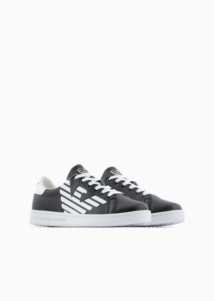 La tendenza sportswear ispira e influenza non solo l'abbigliamento di tutti i giorni, ma anche le calzature grazie a materiali e dettagli tecnici. EA7 personalizza queste sneakers dedicate ai più piccoli grazie al logo Eagle sul quarto e i dettagli a contrasto.