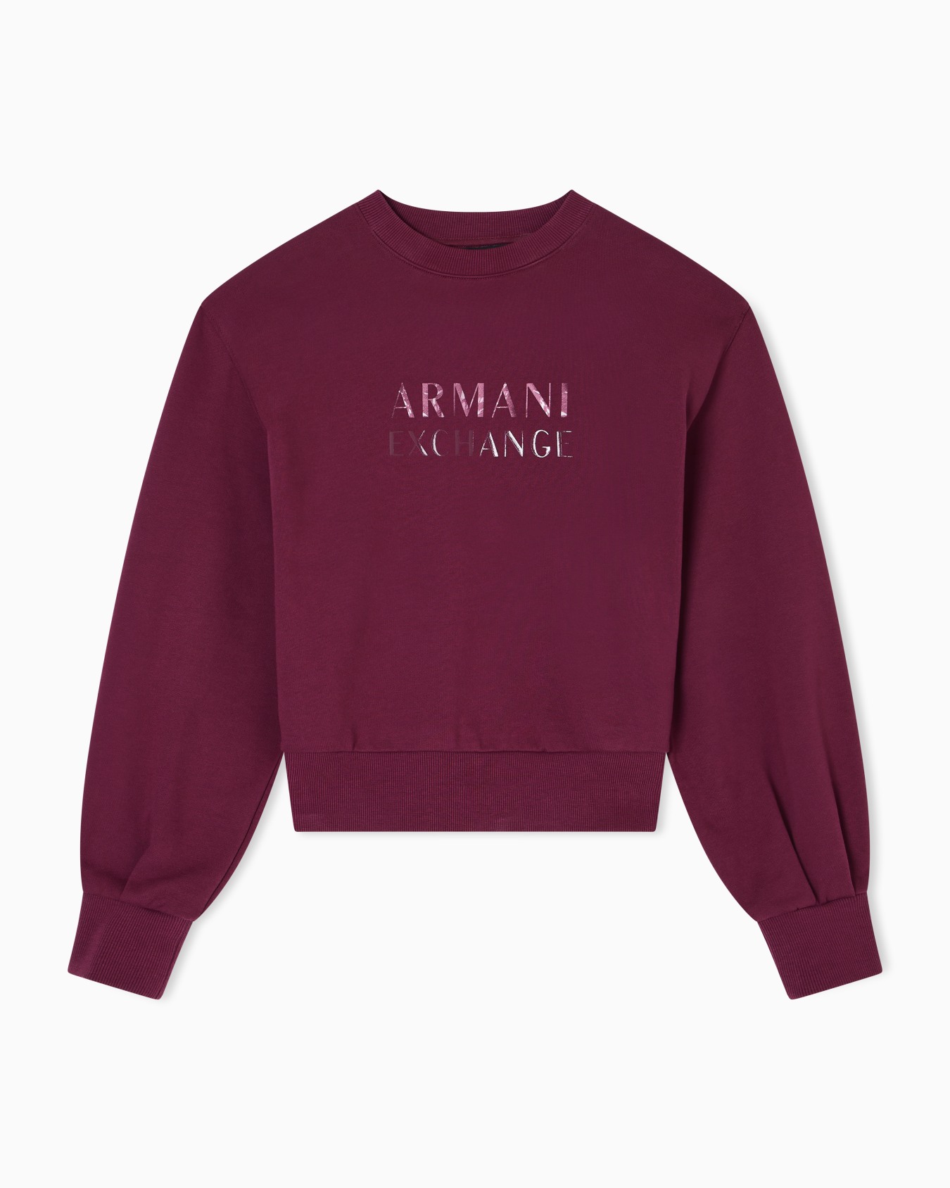 Felpa realizzata in morbido cotone French Terry, il capo perfetto per unire comfort e un'estetica di tendenza. Il design è caratterizzato da un fit moderno e leggermente corto, ideale per creare abbinamenti attuali con jeans a vita alta o gonne. Le maniche, con un volume contemporaneo che si stringe al polsino, aggiungono un dettaglio distintivo e femminile. Protagonista indiscusso è il maxi logo frontale, che cattura l'attenzione e firma il capo con un'impronta audace.