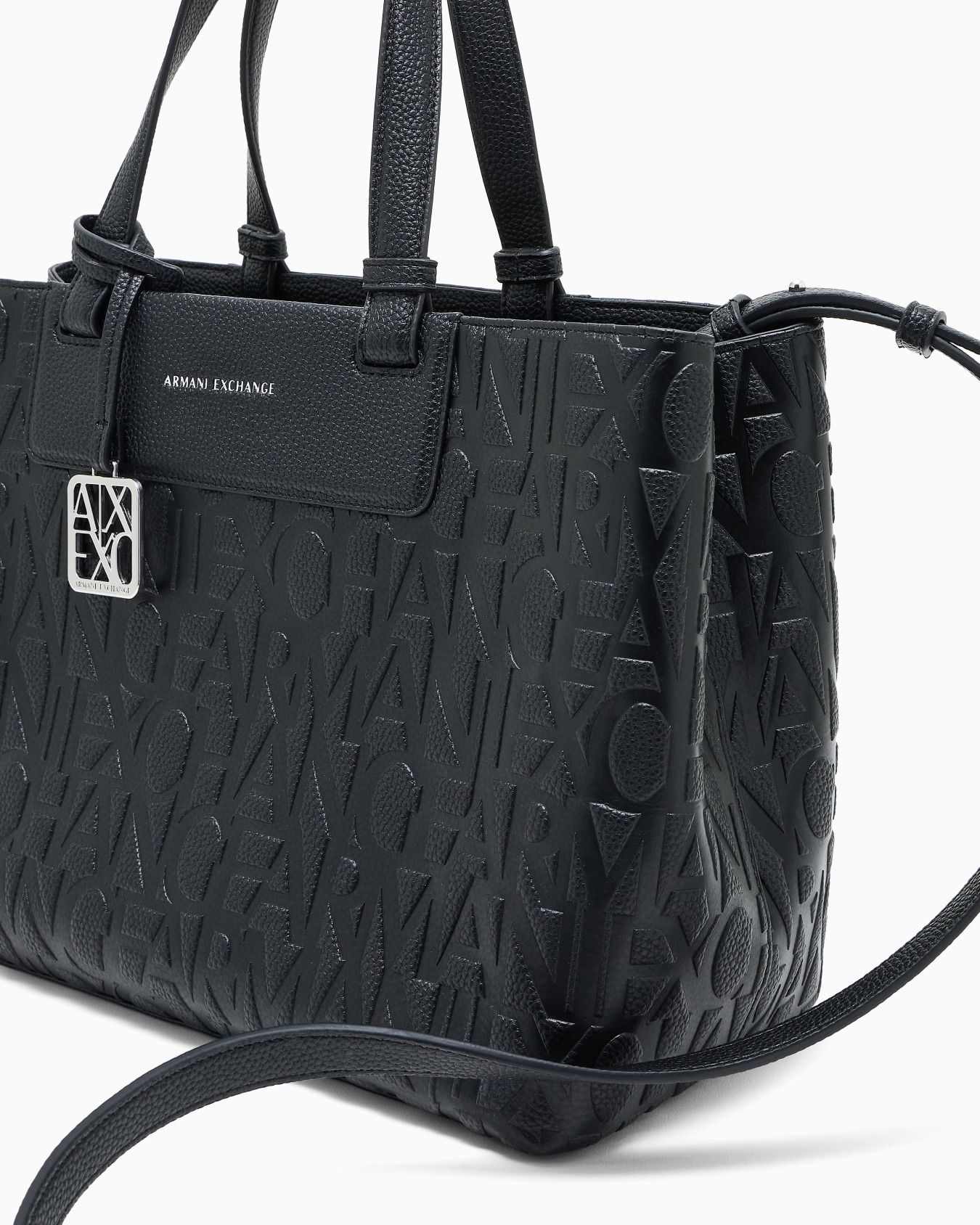 Borsa a mano realizzata in materiale resistente con un audace motivo logo all-over in rilievo, l'accessorio statement per chi non teme di farsi notare. Questa borsa combina un design di tendenza con una praticità impeccabile, grazie ai doppi manici e alla tracolla removibile che permettono di indossarla in modi diversi. La sua silhouette strutturata e i dettagli ricercati, come il charm logo e la placchetta frontale, la rendono un vero e proprio must-have per completare ogni outfit con un tocco distintivo.