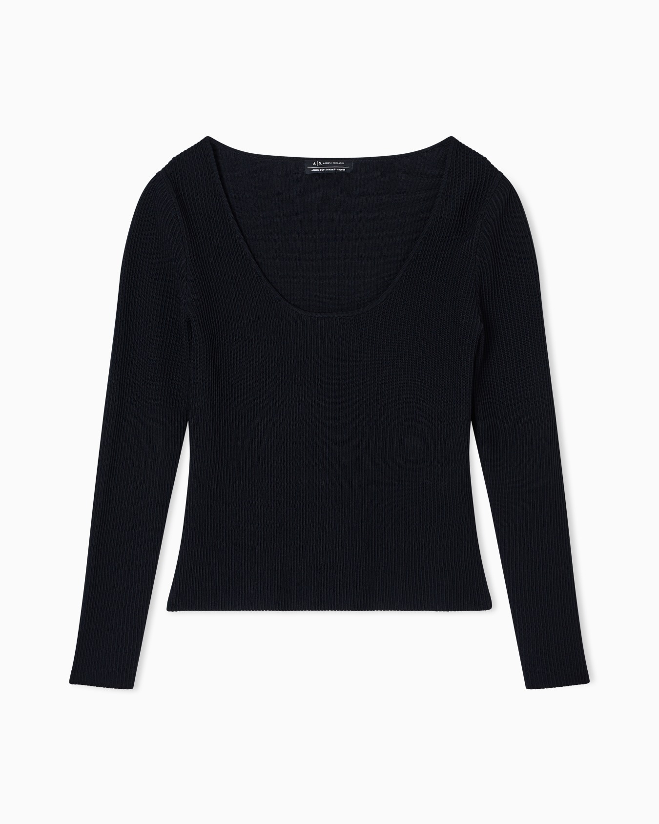 Maglia a maniche lunghe Realizzata in maglia a costine Modello con scollo ampio e arrotondato Vestibilità aderente Logo applicato sull'etichetta interna