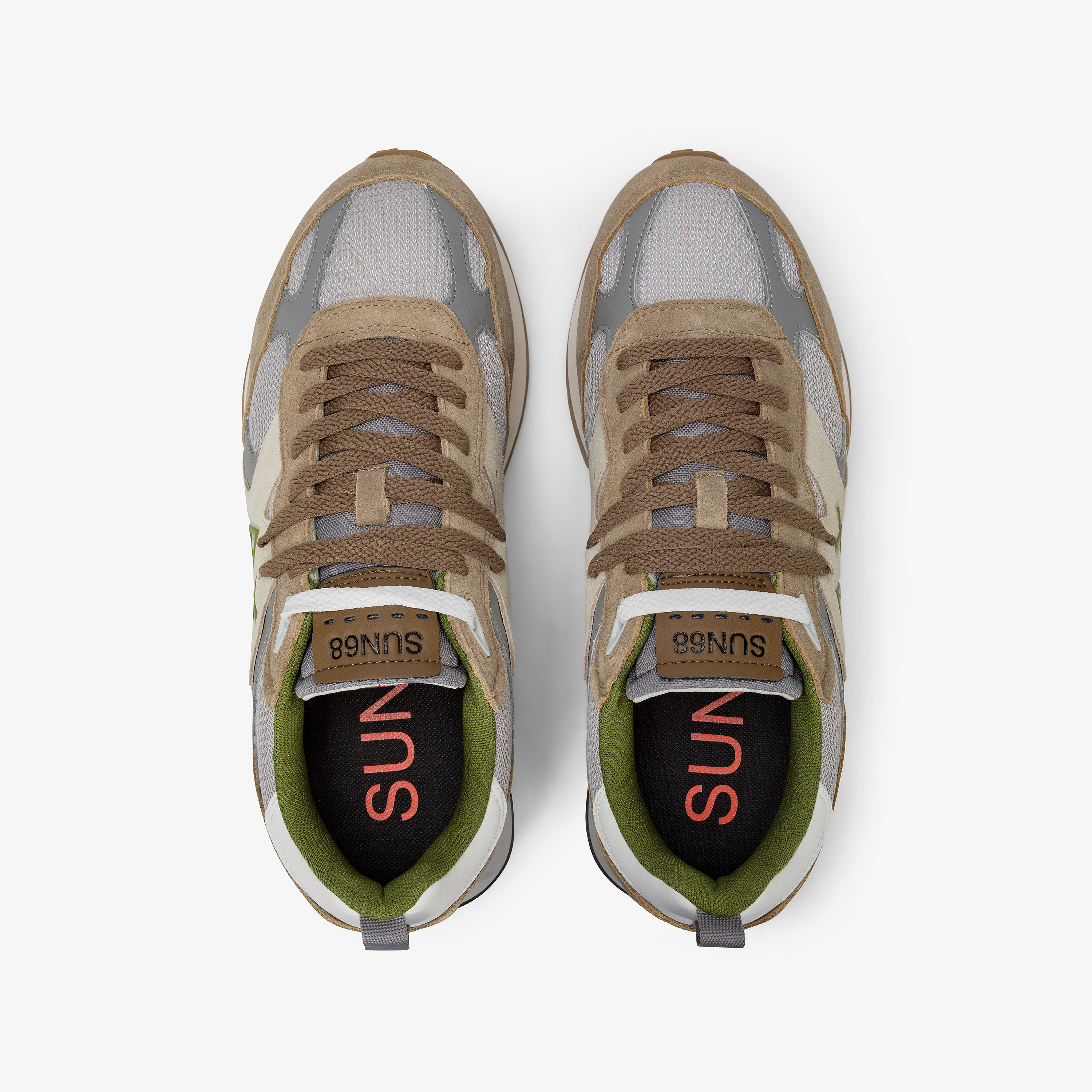 Versatile e resistente, Jaki Outdoor è la Sneaker perfetta per chi vive la città senza rinunciare all’avventura. Il design compatto protegge il piede, mentre la maxi patch logata sul lato è il segno dello stile SUN68.