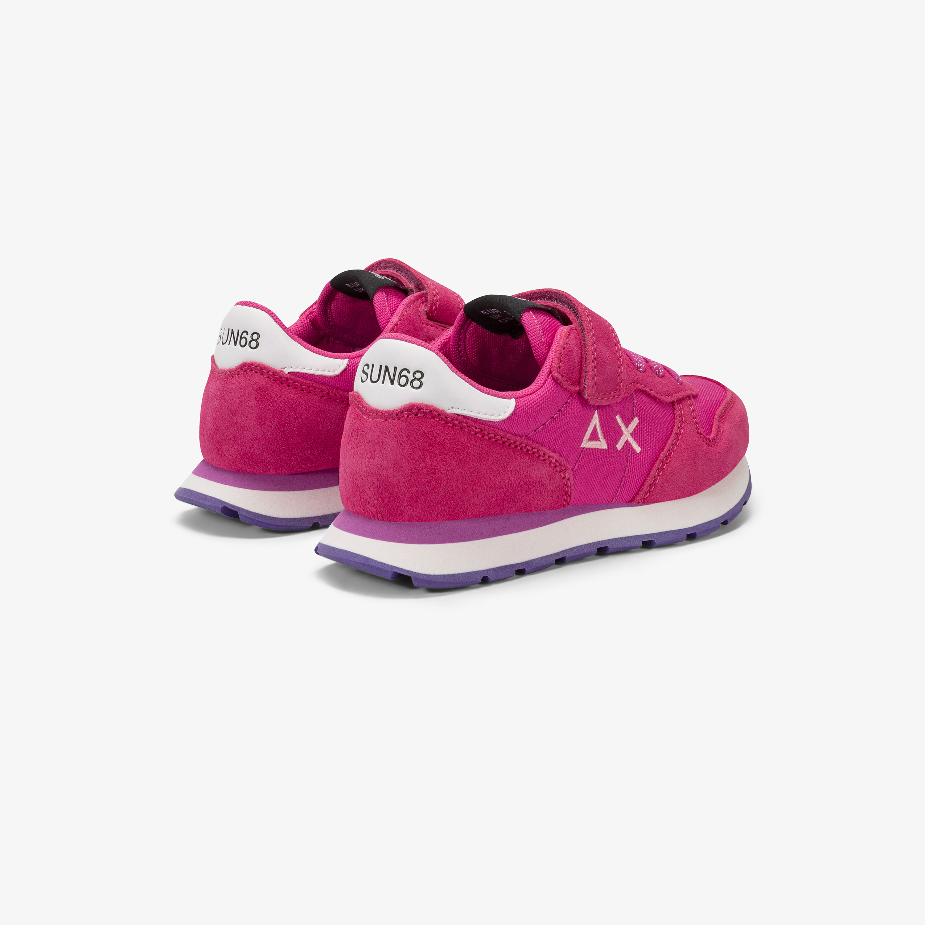 Perfetta per la scuola e il tempo libero, Ally è la sneaker stile running da bambina che esprime in ogni dettaglio lo spirito SUN68. Il modello è realizzato in materiali di qualità con logo ricamato sul lato, chiusura con lacci e cinturino a strappo.